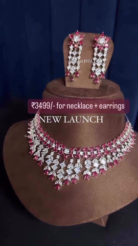 Diamond drop necklace and earrings (emerald / ruby red)