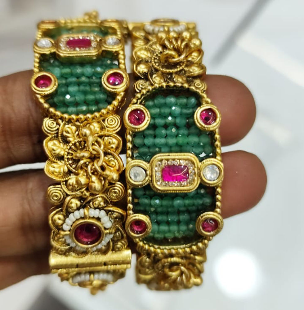 Victorian kada bangles in two tone polish - Green - one pair - 2 pieces