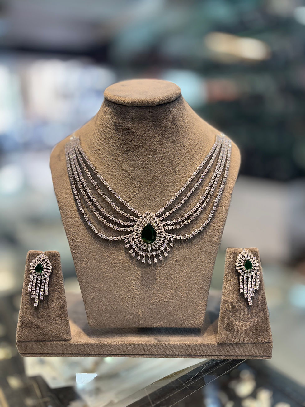 Three layered diamond necklace with earrings - Silver polish ₹4,500.00PriceQuantity*Out of StockNotify When Available