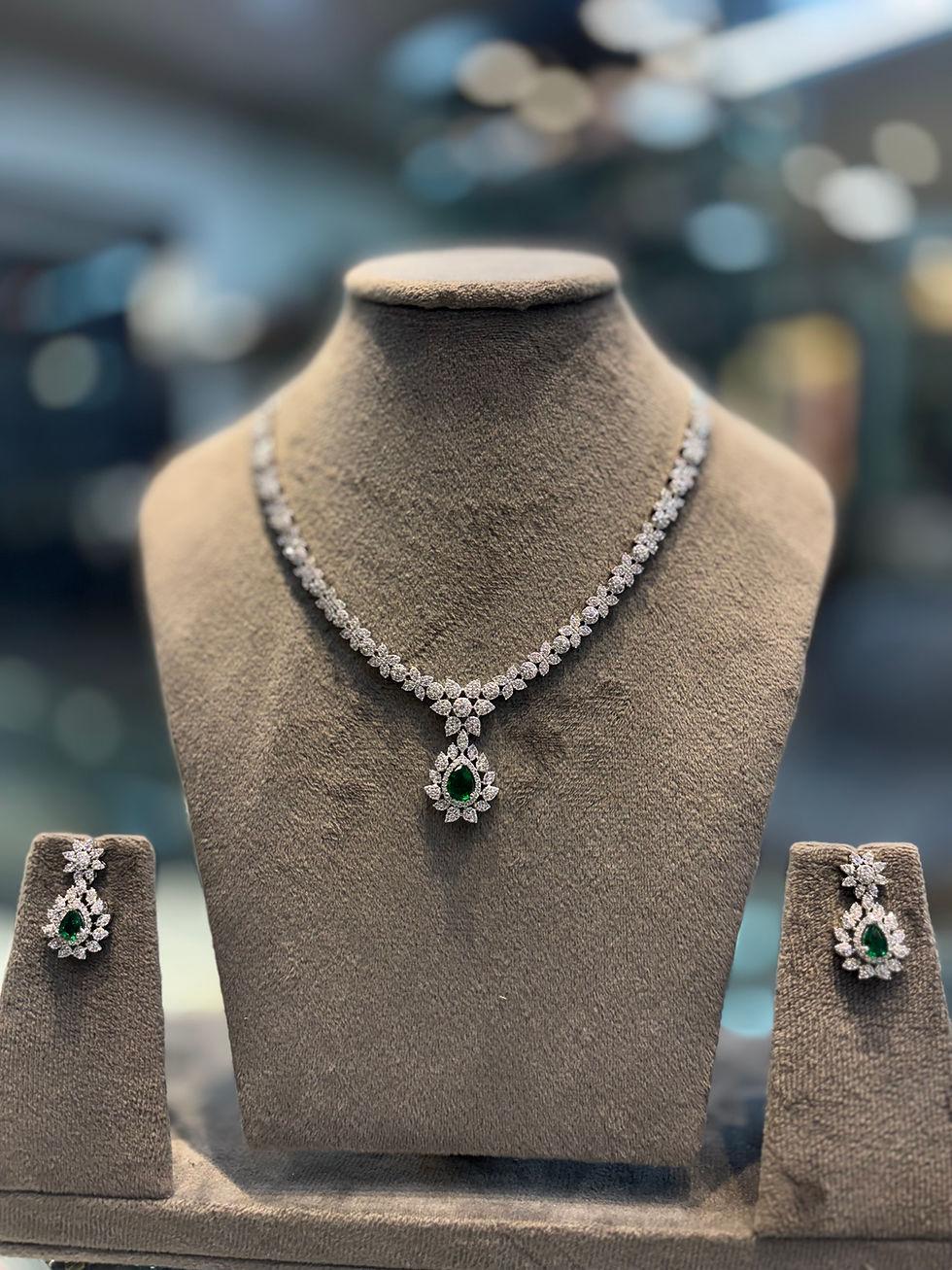 Real looking diamond studded necklace with earrings - Green