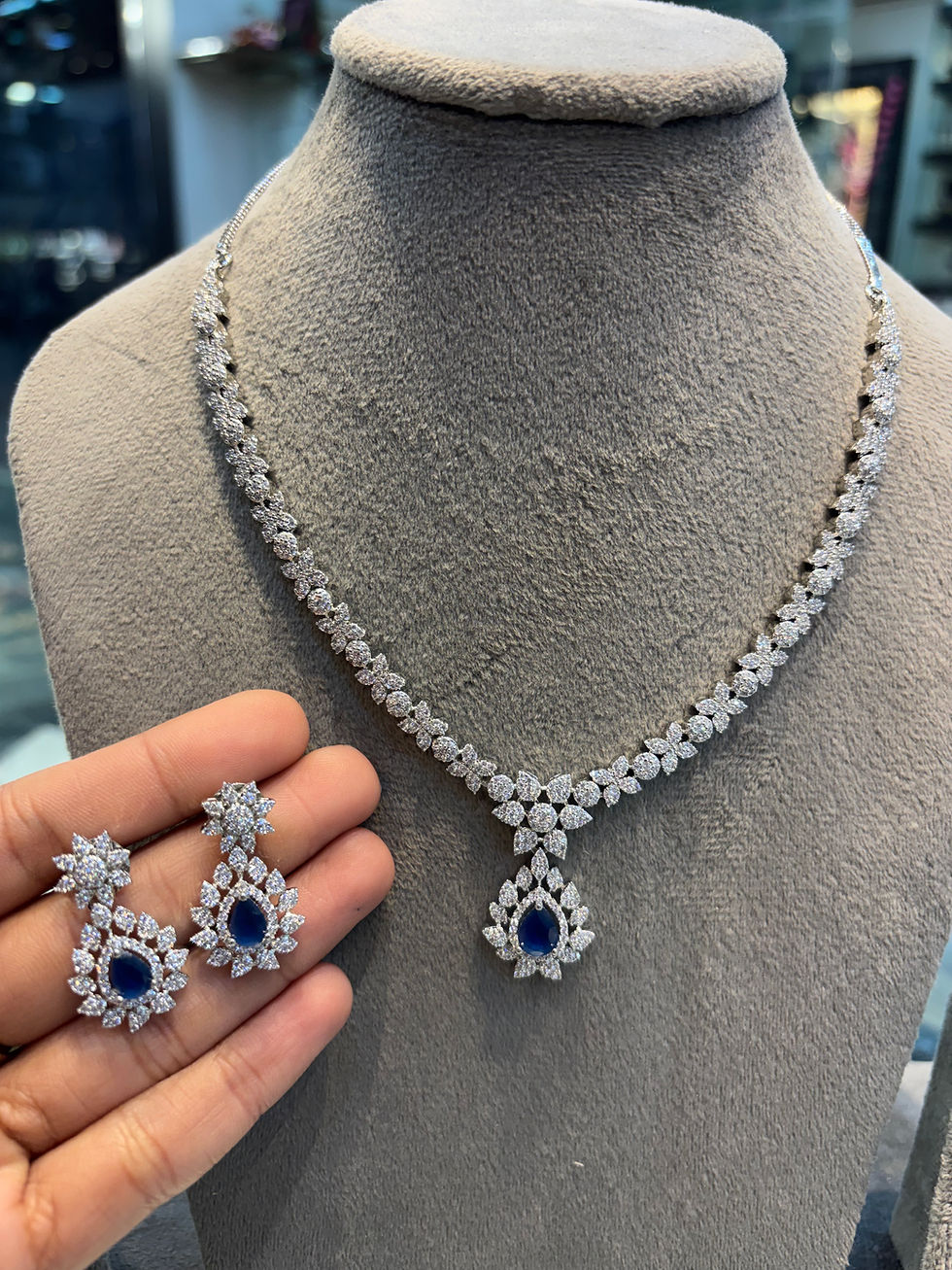 Real looking diamond studded necklace with earrings - Blue